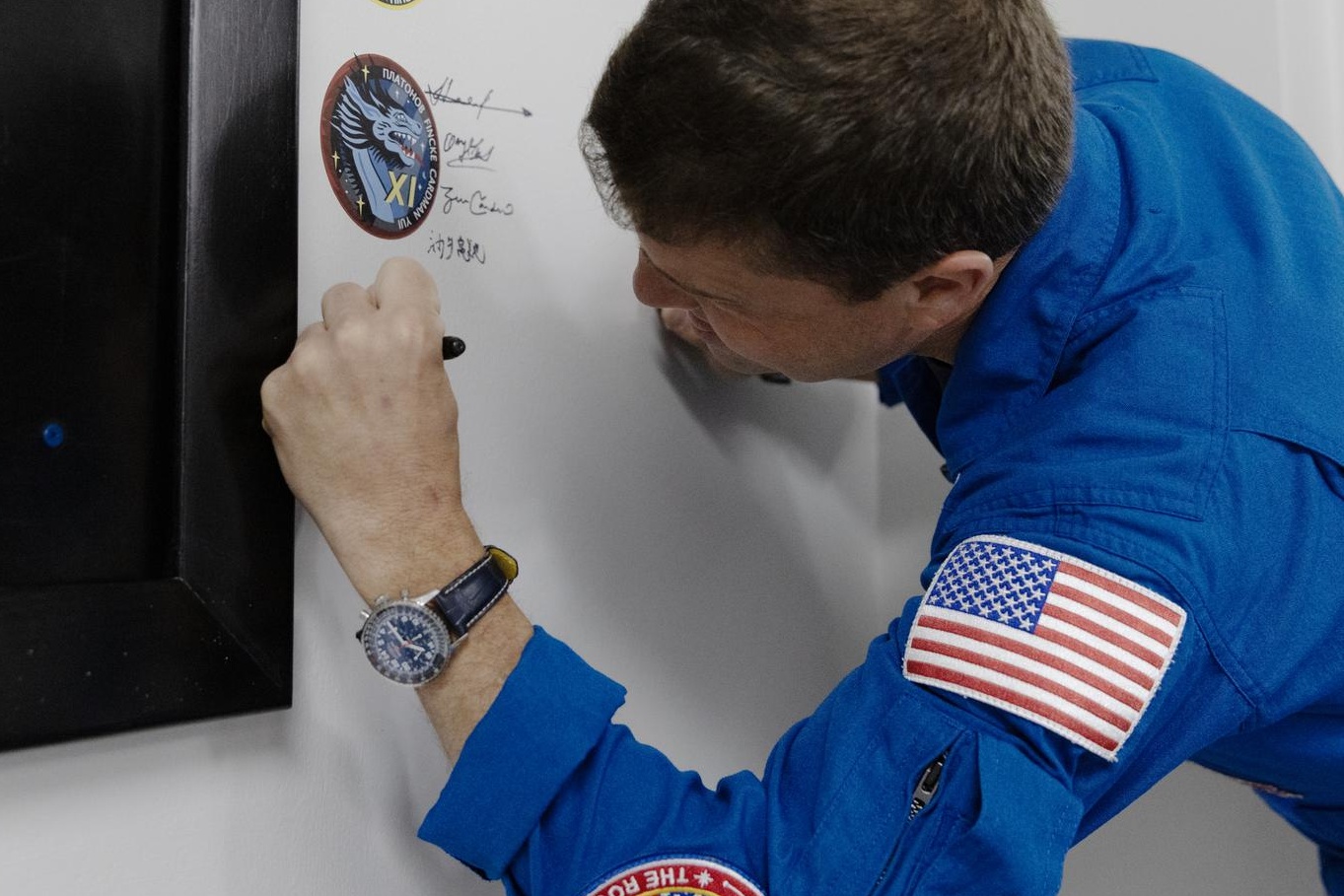 Reid Wiseman Breitling Navitimerrel a csuklóján (Kép: NASA/Kim Shiflett)